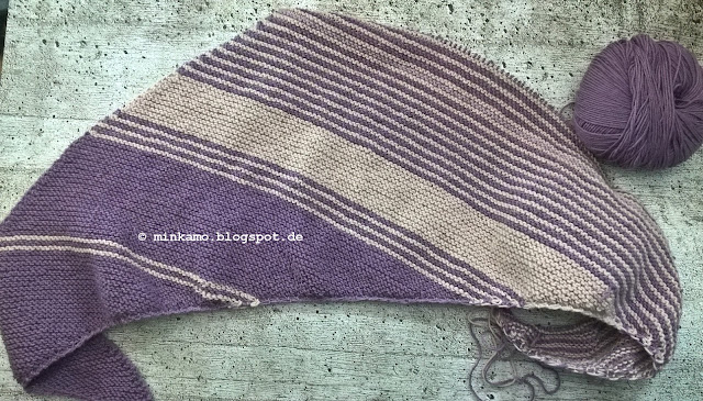 On Instagram I already mentioned that I got stuck with the colour combination on shawl #5 (project on my needles #12 *here*) and so started on #6. Its colours are completely different, not bright, but muted purple shades, eventually one need variety ;-)